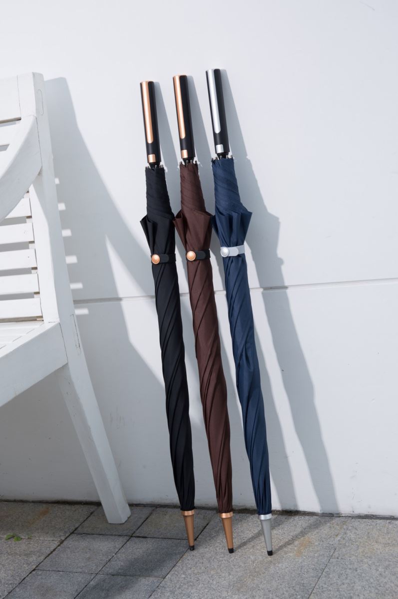 時尚簡約的線條設計,將把手的造型修飾得更加纖長;別具匠心的外觀,更符合低調優雅的精英紳士一族。當經典流金色、鈦銀色配件與深色系傘面相遇,讓你在精致細節中感受典雅氣息。